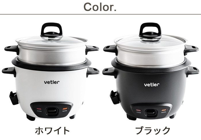 日用品メーカーVETLER(ヴェトラー)から昭和レトロな炊飯器を思わせるデザインがオシャレな電気鍋の登場! 台湾では一家に一台以上はあると言われる電気鍋は一度使えば手放せなくなるほど魅力がいっぱい。スイッチ1つで「煮る・炊く・蒸す・温める」の4つの調理が可能。煮込み料理や鍋料理の他に、4合まで炊飯ができます。鍋と付属のアルミせいろを組み合わせれば上下2段で同時調理も◎一人暮らしの炊飯器や、サブ鍋にオススメのコンパクトサイズです。