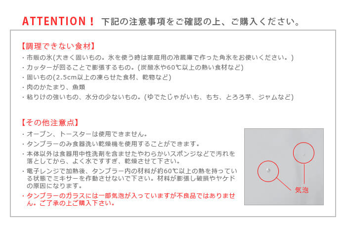 一般的なミキサーは運転をこまめに止めてモーターが熱くならないように注意し使用しなければならない物が多いのですが、こちらのクッキングミキサーは4分間の連続運転が可能です。その分、幅広い料理に使えるのがメリットです。1台あれば、お料理の下ごしらえから、オリジナルのソースやドレッシング、ケーキやムースなどのデザートまで作れます。毎日の料理に重宝すること間違いなしです。