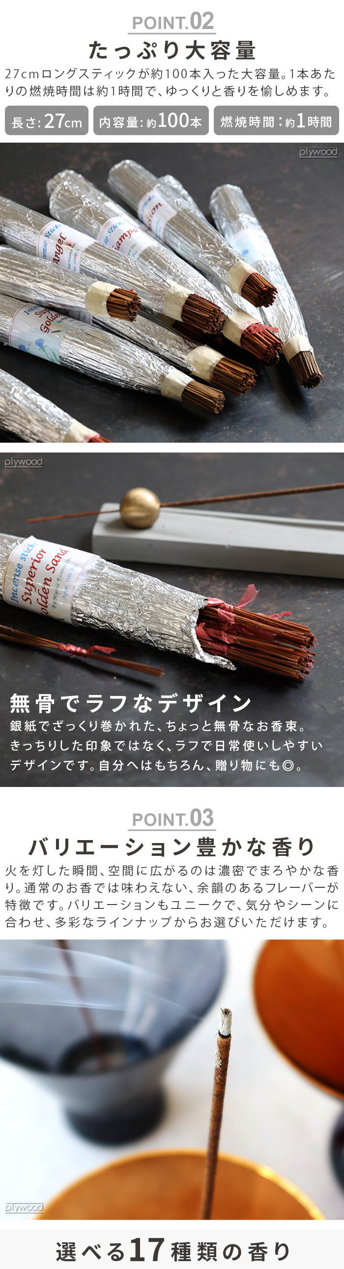 木蓮科のチャンパと白檀のミックスで、深くて甘い香り。空間の気を浄化し、家内繁栄をもたらすといわれています。